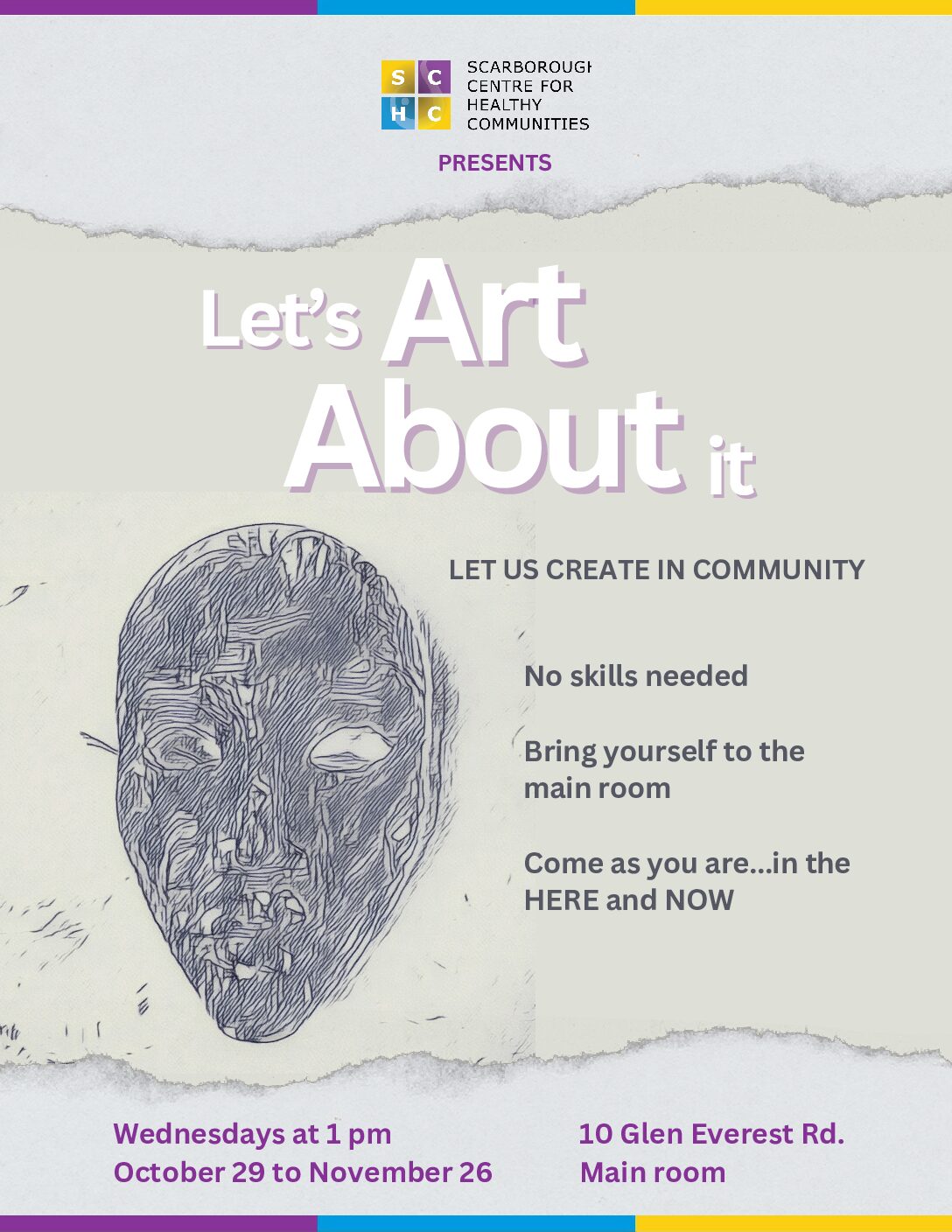 10 Glen Everest Rd. Main Room Every Wednesday No Skills Needed, Come as you are---In the Here and Now Let’s Art About It is an art therapy program that uses art-based activities as a tool to build trust, social connection, and health awareness among community members in Scarborough—particularly those from groups at higher risk for Hepatitis C (HCV). This…